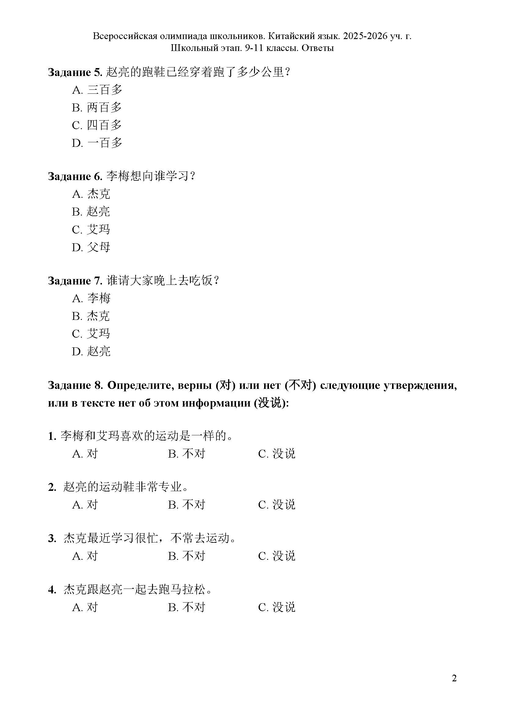Задания, ответы и решения на этой страницы предоставлены в ознакомительных целях и лишь показывают специфику и структуру олимпиады по Китайскому языку. Вы можете использоваться ими как тренажёром для подготовки к предстоящей олимпиаде. Тренируйся, участвуй и побеждай!