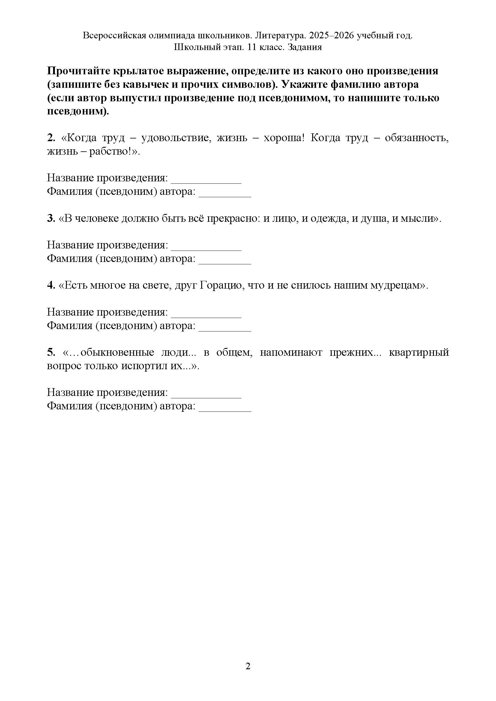 Задания, ответы и решения на этой страницы предоставлены в ознакомительных целях и лишь показывают специфику и структуру олимпиады по Литературе. Вы можете использоваться ими как тренажёром для подготовки к предстоящей олимпиаде. Тренируйся, участвуй и побеждай!