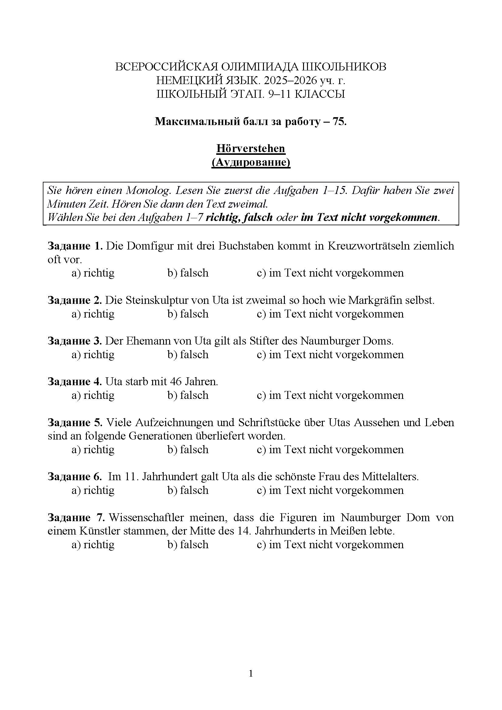 Всероссийская олимпиада школьников (ВсОШ) школьного этапа по Немецкому языку. Официальные задания, ответы и решения для 11 (одиннадцатого) класса (задания и ответы)