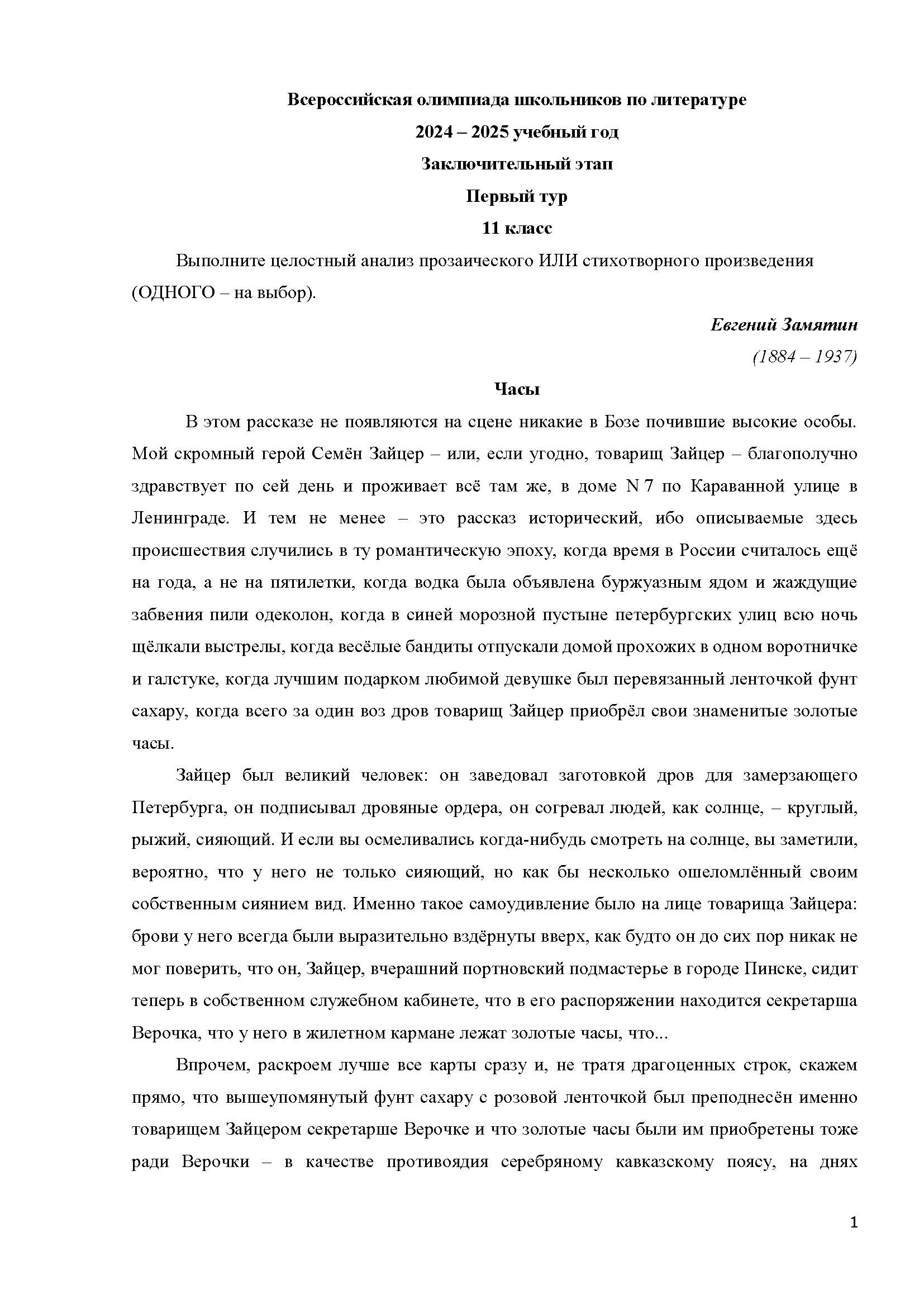 Всероссийская олимпиада школьников (ВсОШ) заключительного этапа по Литературе. Официальные задания, ответы и решения для 11 (одиннадцатого) класса (задания и ответы)