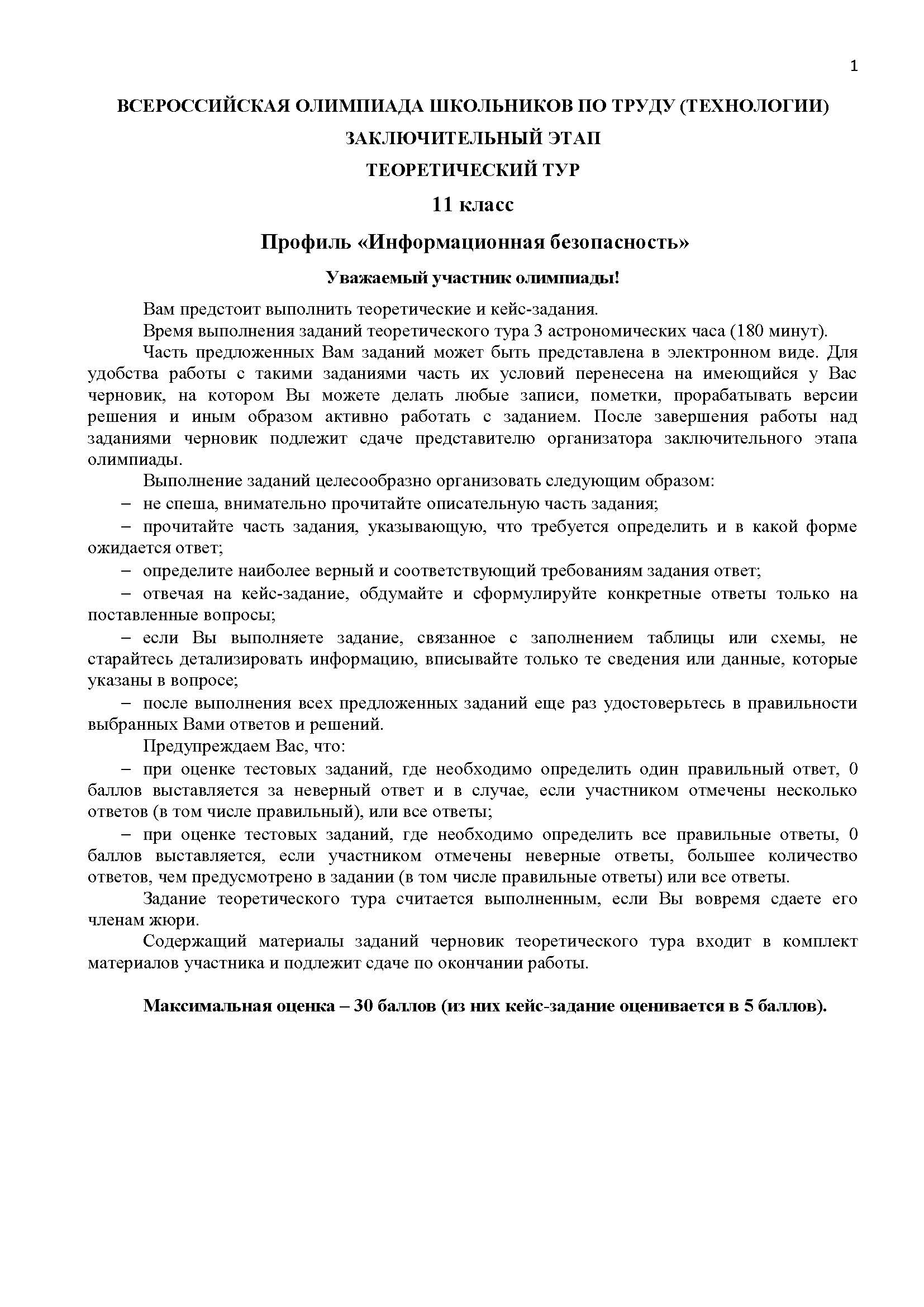 Всероссийская олимпиада школьников (ВсОШ) заключительного этапа по Технологии. Официальные задания, ответы и решения для 11 (одиннадцатого) класса (задания и ответы)