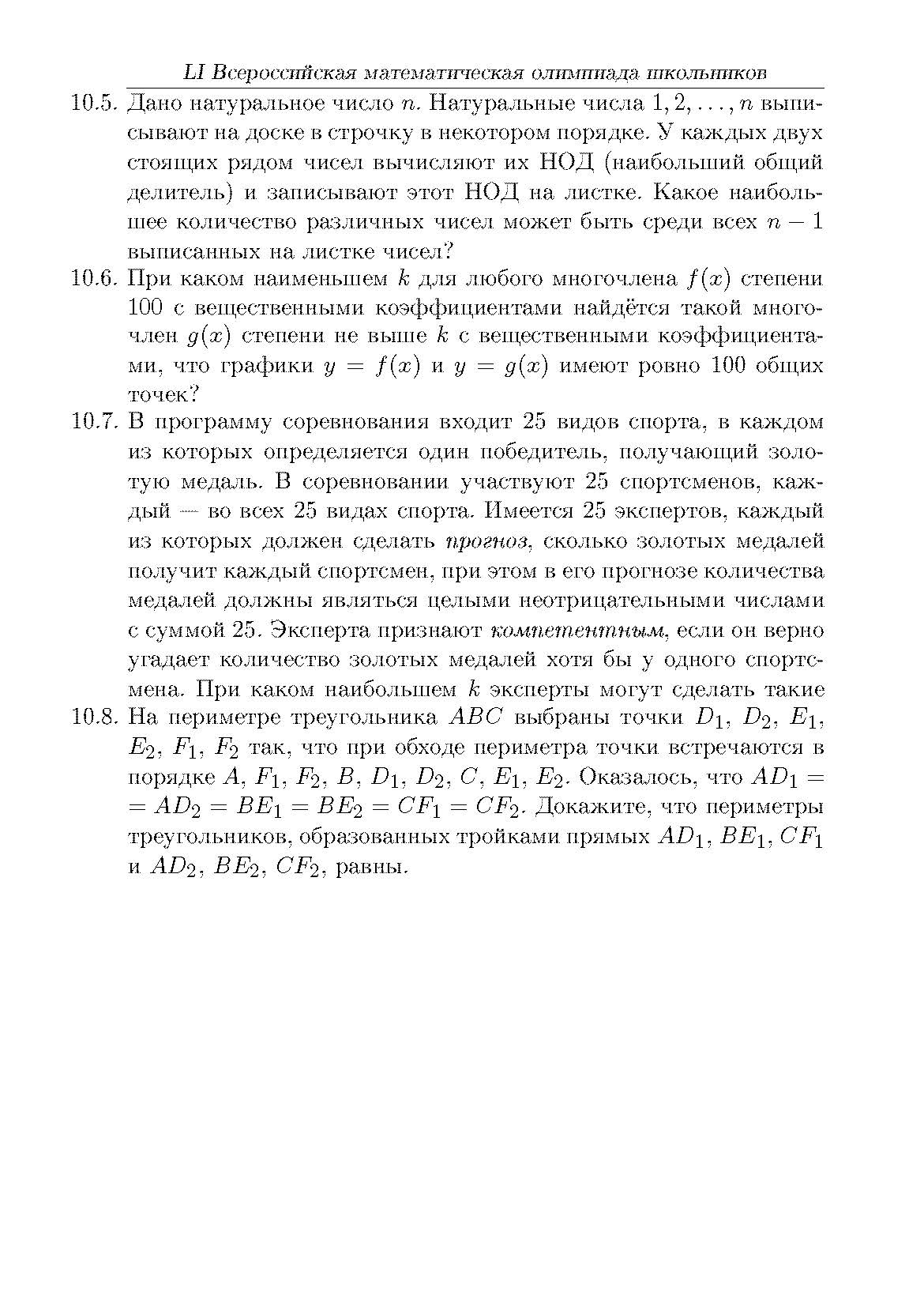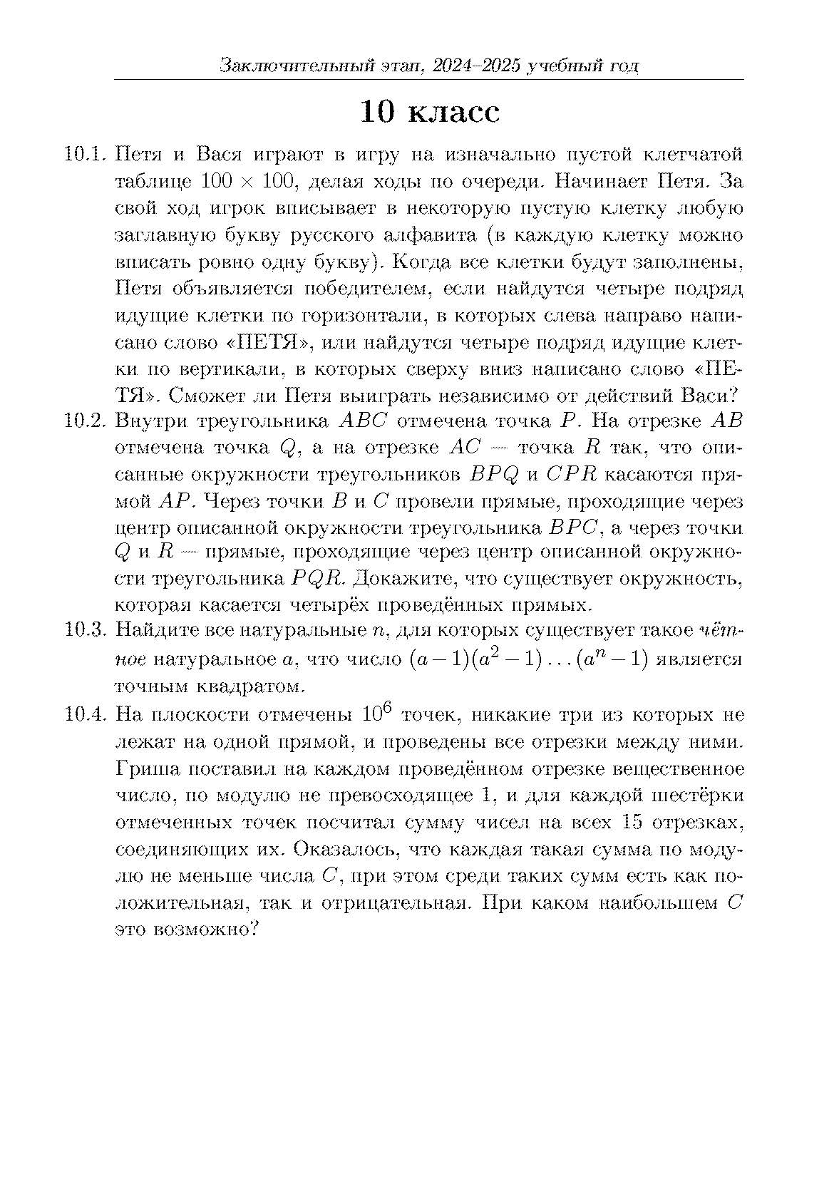 Всероссийская олимпиада школьников (ВсОШ) заключительного этапа по Математике. Официальные задания, ответы и решения для 10 (десятого) класса (задания и ответы)