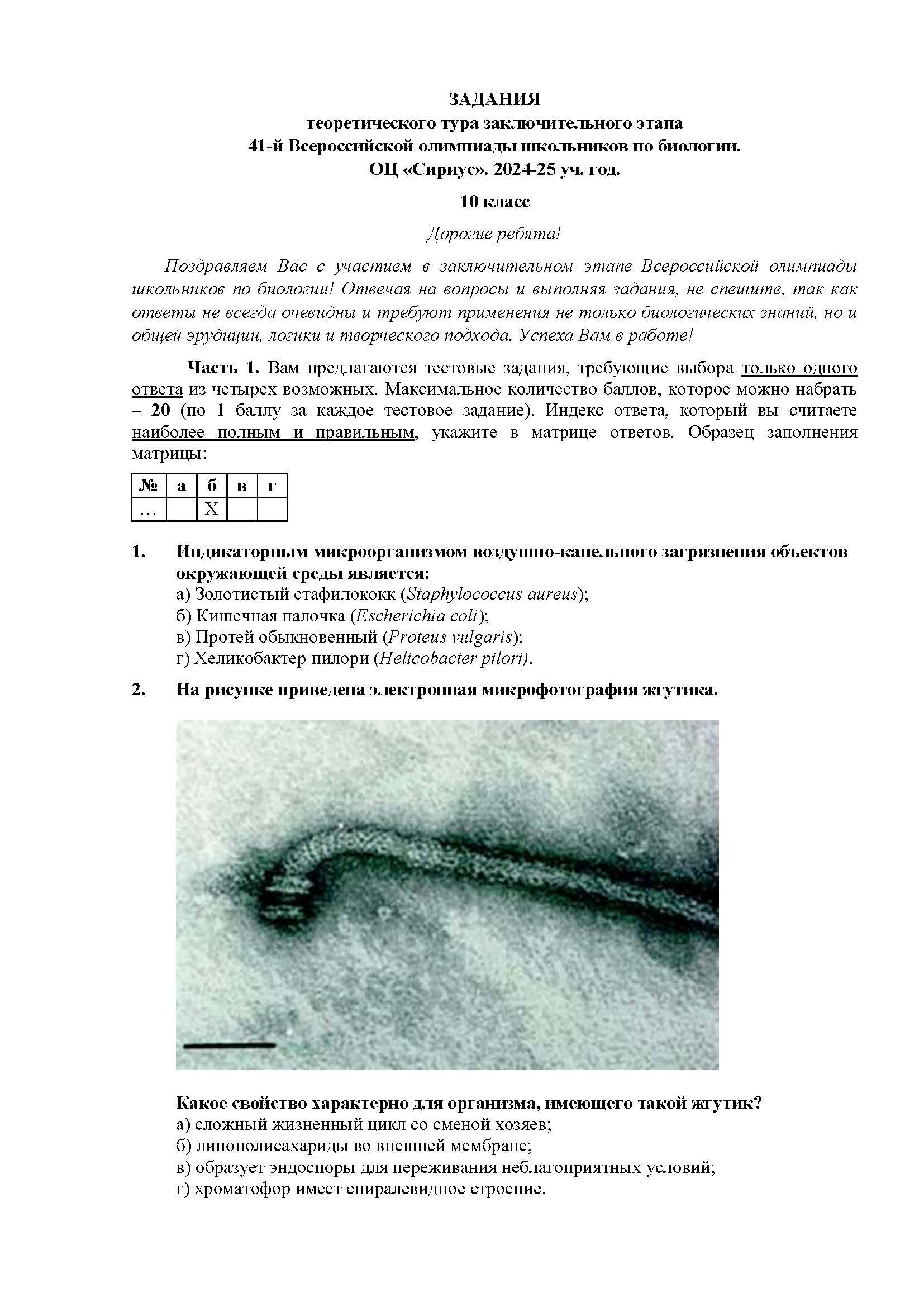 Всероссийская олимпиада школьников (ВсОШ) заключительного этапа по Биологии. Официальные задания, ответы и решения для 10 (десятого) класса (задания и ответы)