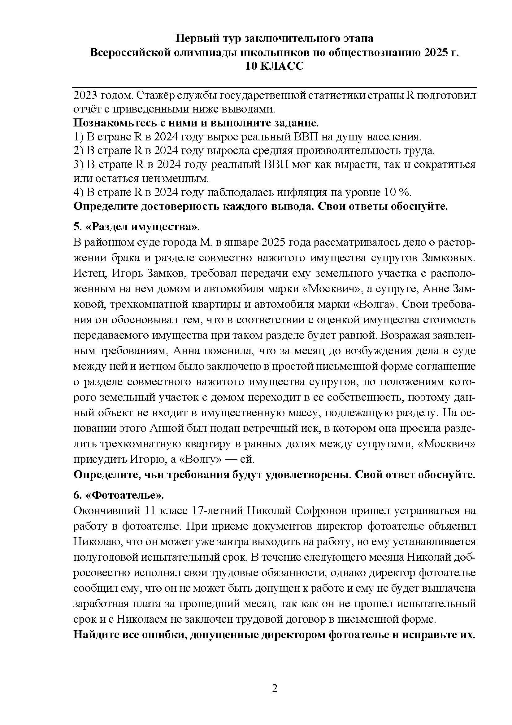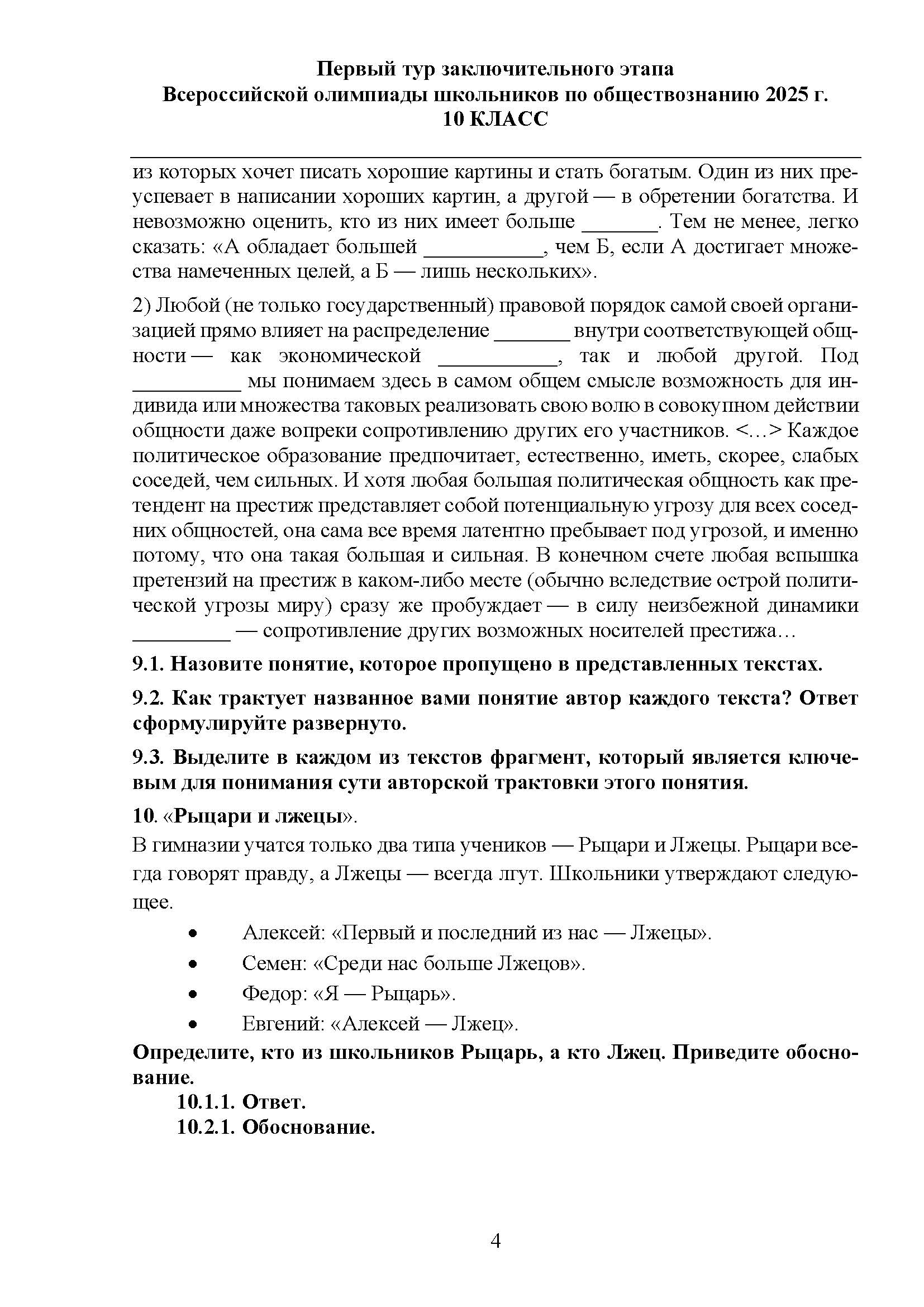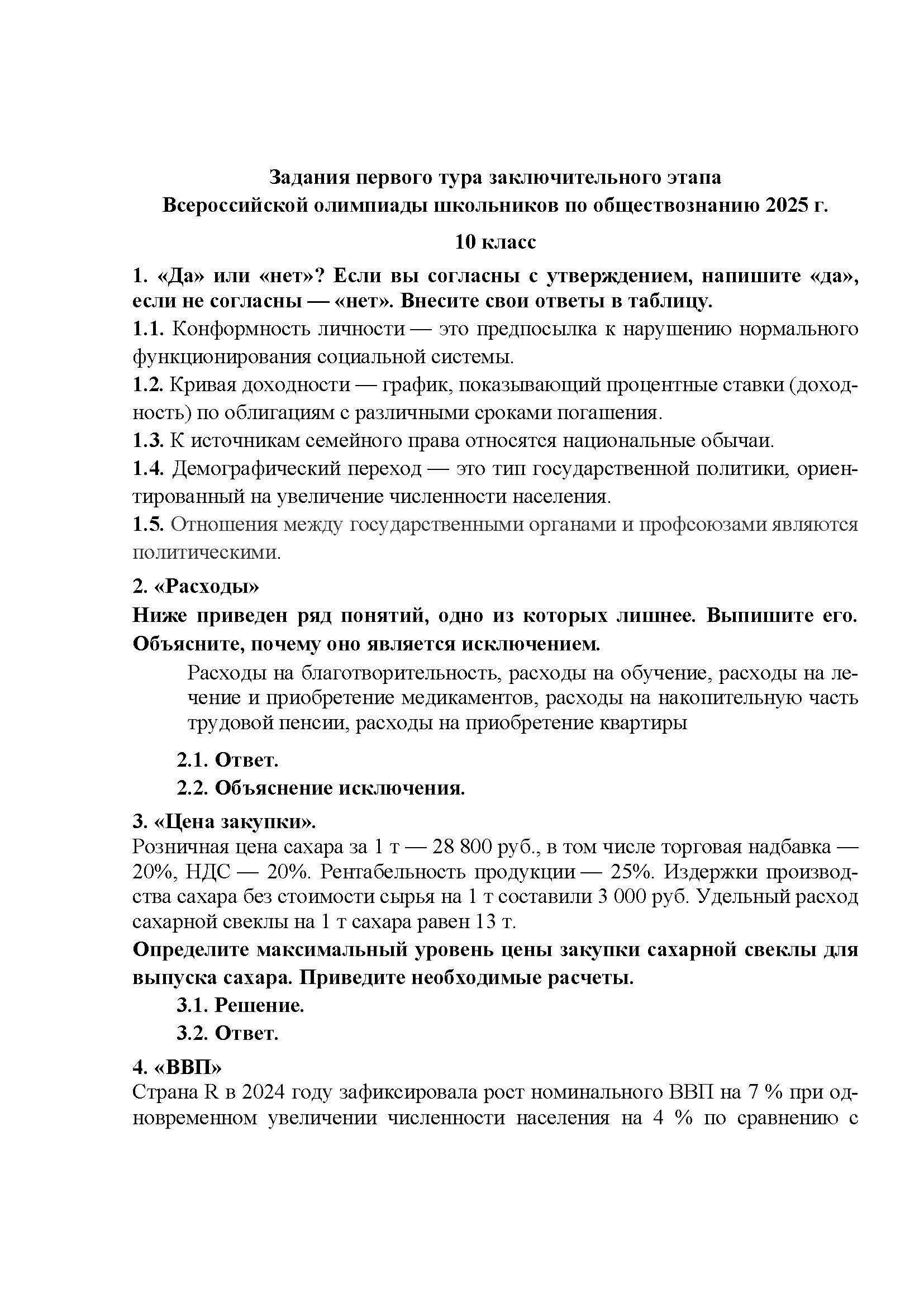 Всероссийская олимпиада школьников (ВсОШ) заключительного этапа по Обществознанию. Официальные задания, ответы и решения для 10 (десятого) класса (задания и ответы)