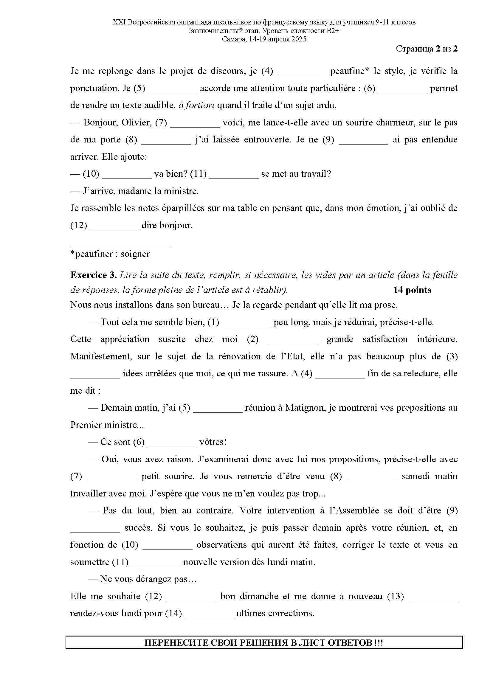Задания, ответы и решения на этой страницы предоставлены в ознакомительных целях и лишь показывают специфику и структуру олимпиады по Французскому языку. Вы можете использоваться ими как тренажёром для подготовки к предстоящей олимпиаде. Тренируйся, участвуй и побеждай!