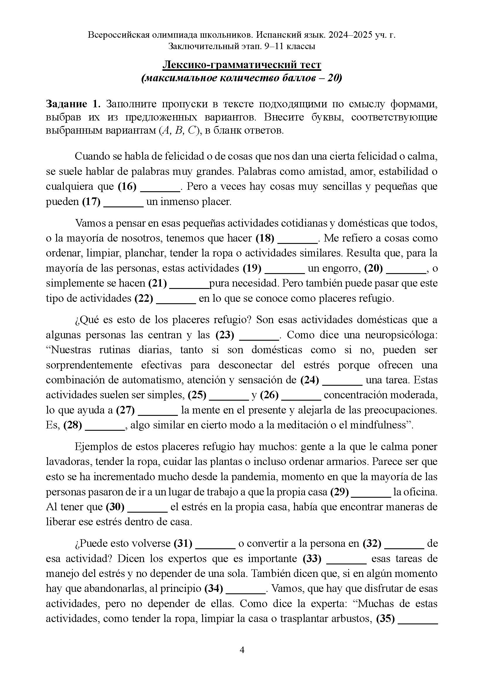Всероссийская олимпиада школьников (ВсОШ) заключительного этапа по Испанскому языку. Официальные задания, ответы и решения для 10 (десятого) класса (задания и ответы)