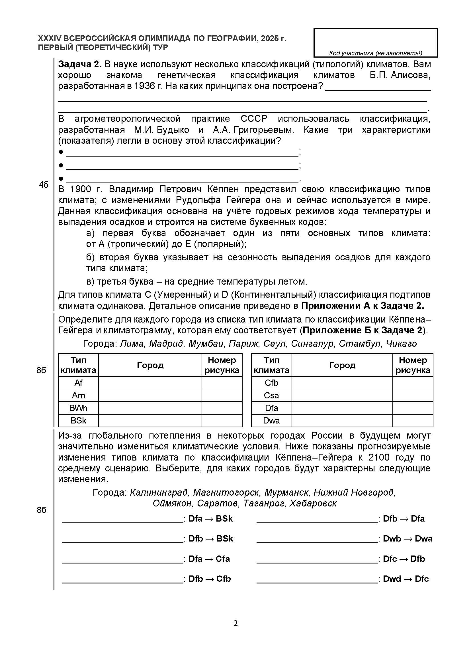 Всероссийская олимпиада школьников (ВсОШ) заключительного этапа по Географии. Официальные задания, ответы и решения для 9 (девятого) класса (задания и ответы)