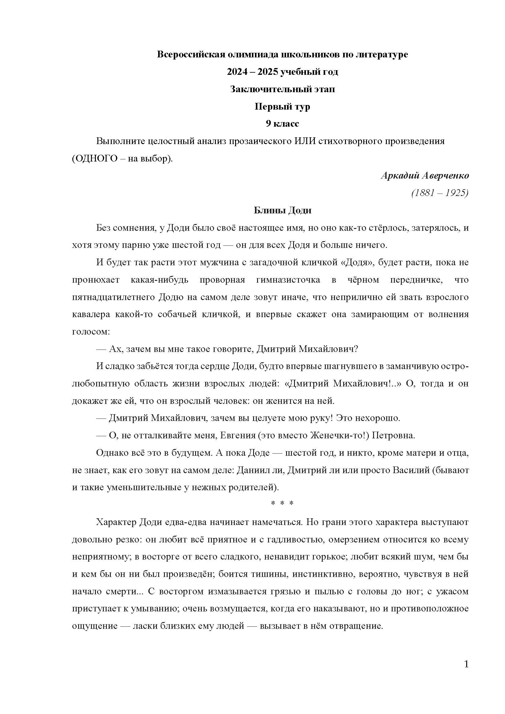 Всероссийская олимпиада школьников (ВсОШ) заключительного этапа по Литературе. Официальные задания, ответы и решения для 9 (девятого) класса (задания и ответы)