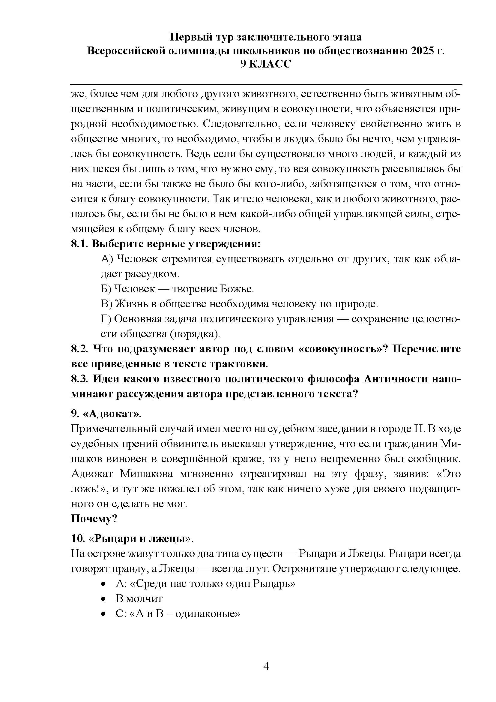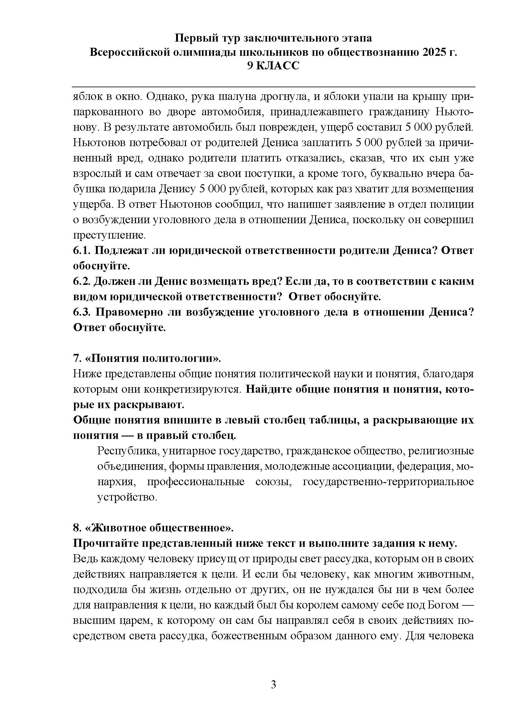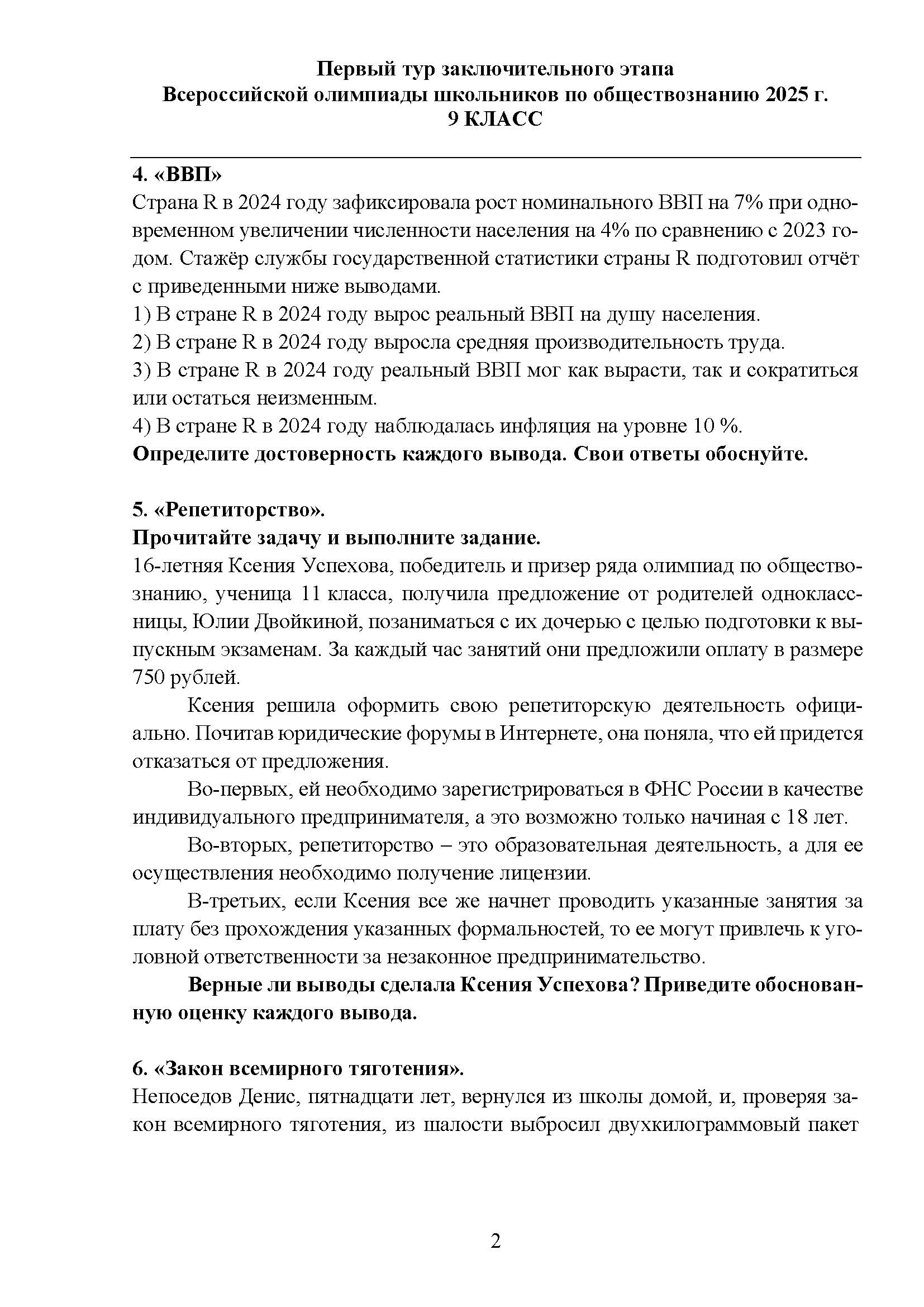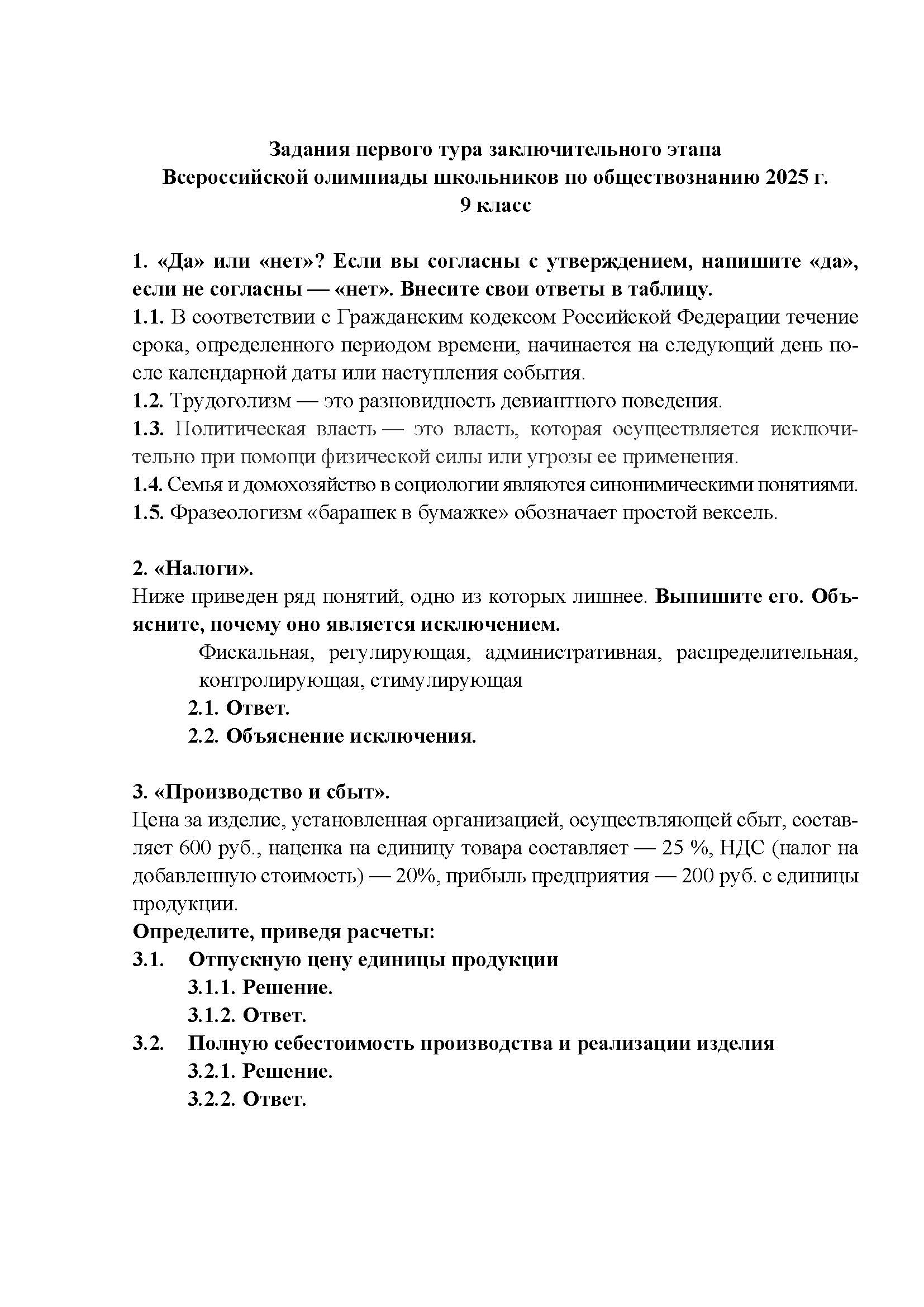 Всероссийская олимпиада школьников (ВсОШ) заключительного этапа по Обществознанию. Официальные задания, ответы и решения для 9 (девятого) класса (задания и ответы)