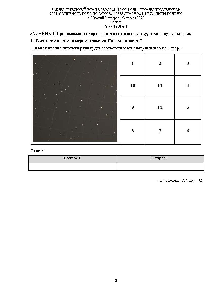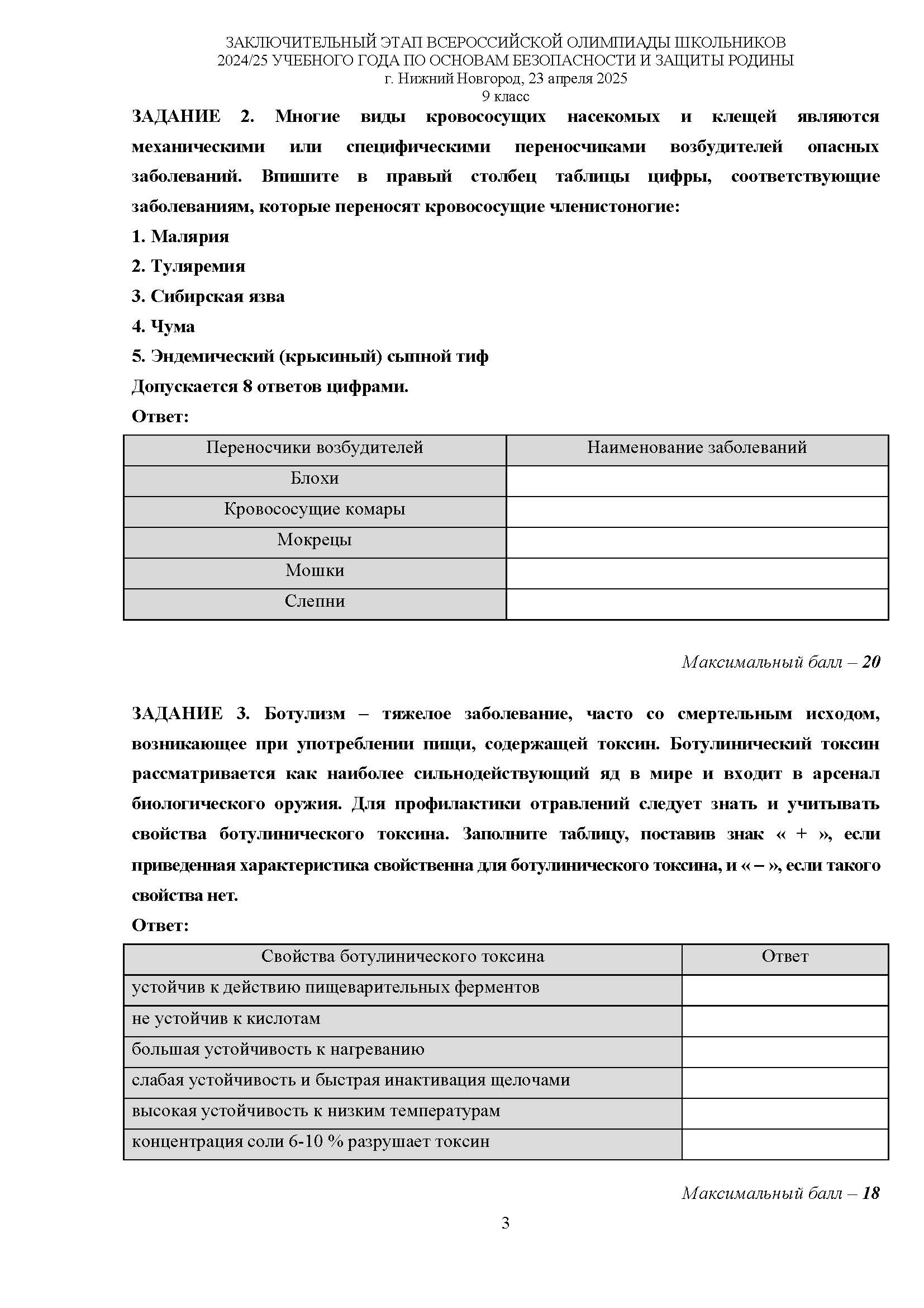 Всероссийская олимпиада школьников (ВсОШ) заключительного этапа по ОБЗР. Официальные задания, ответы и решения для 9 (девятого) класса (задания и ответы)