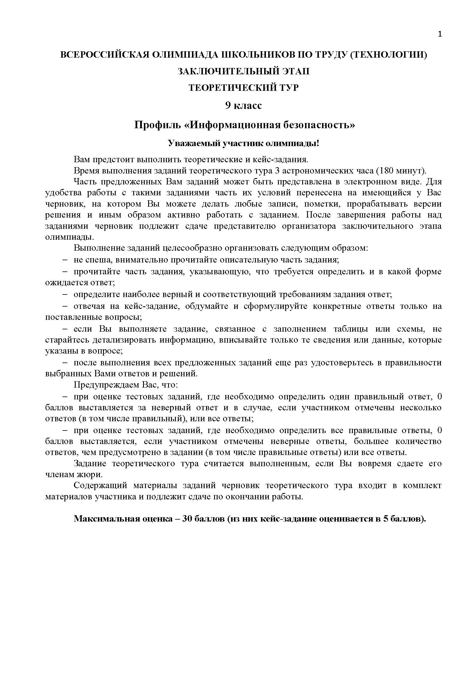 Всероссийская олимпиада школьников (ВсОШ) заключительного этапа по Технологии. Официальные задания, ответы и решения для 9 (девятого) класса (задания и ответы)