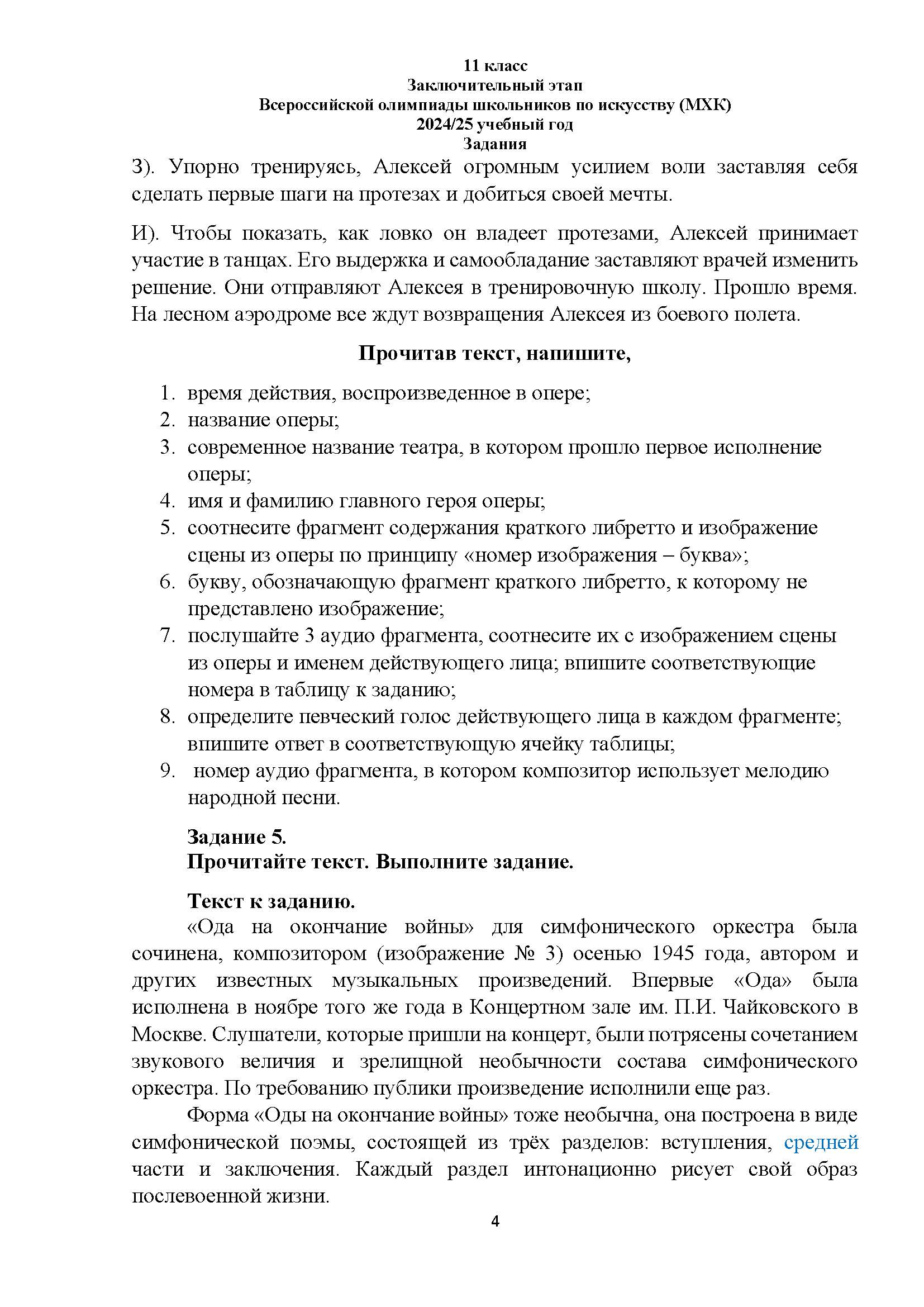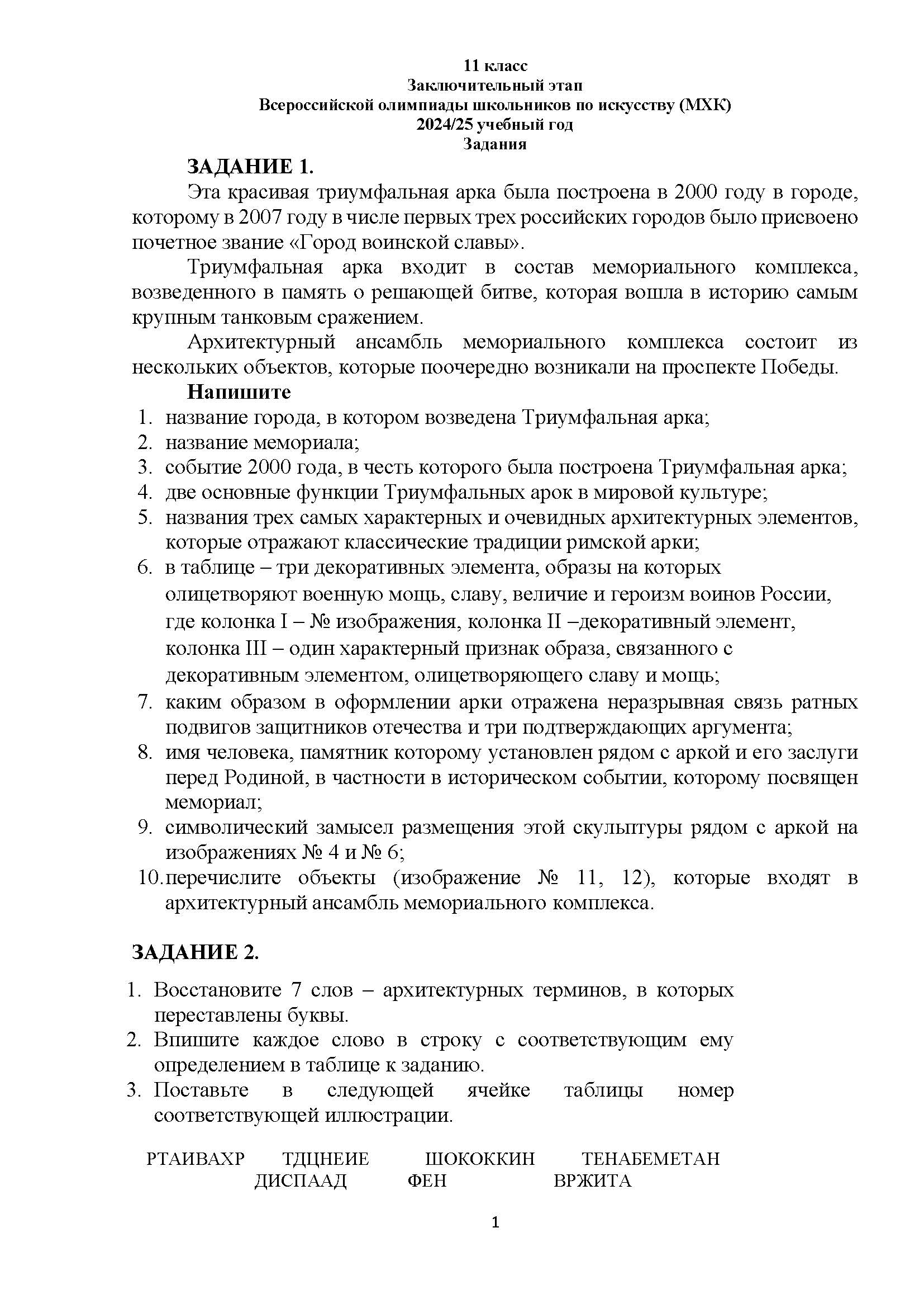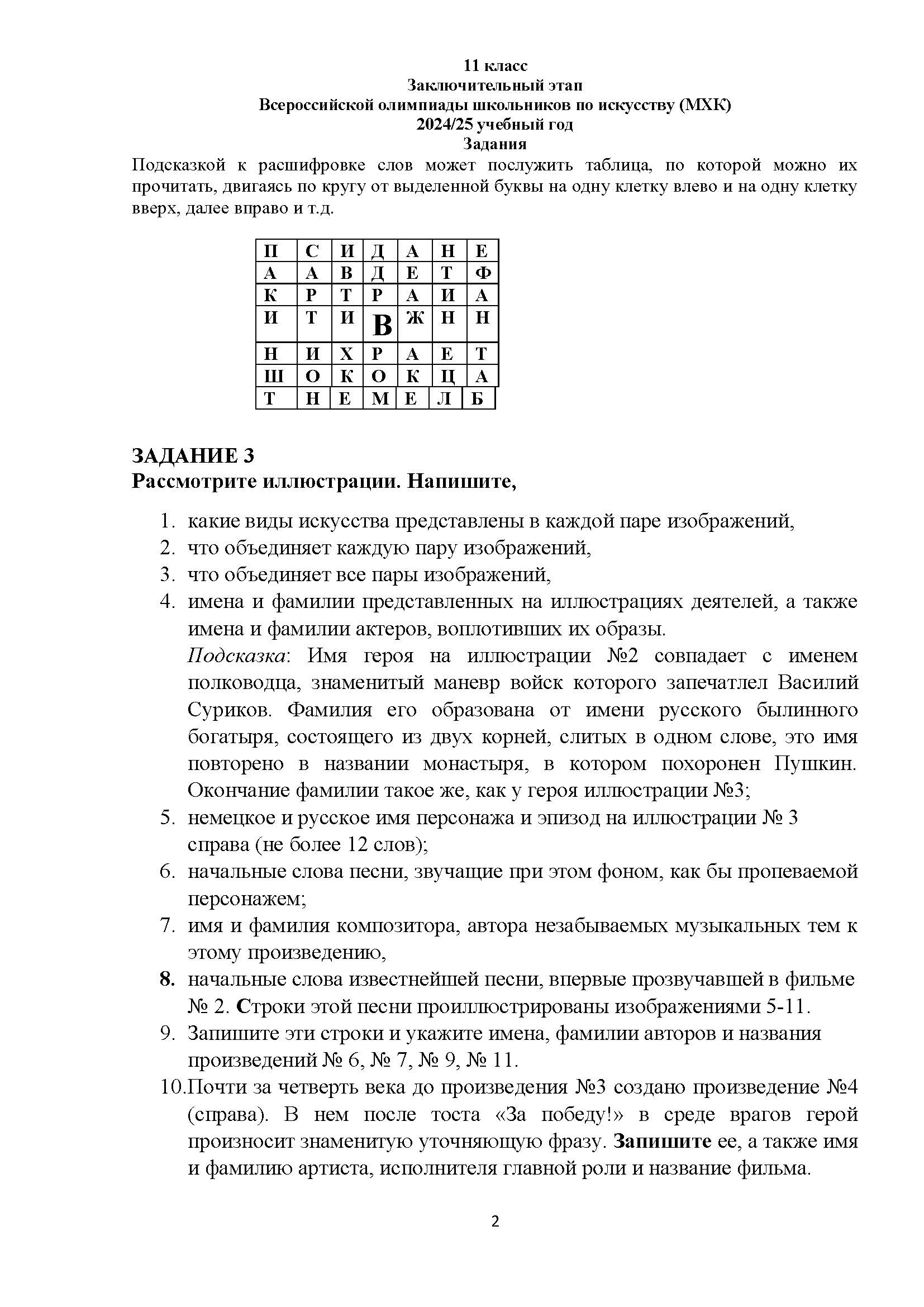 Всероссийская олимпиада школьников (ВсОШ) заключительного этапа по МХК. Официальные задания, ответы и решения для 11 (одиннадцатого) класса (задания и ответы)