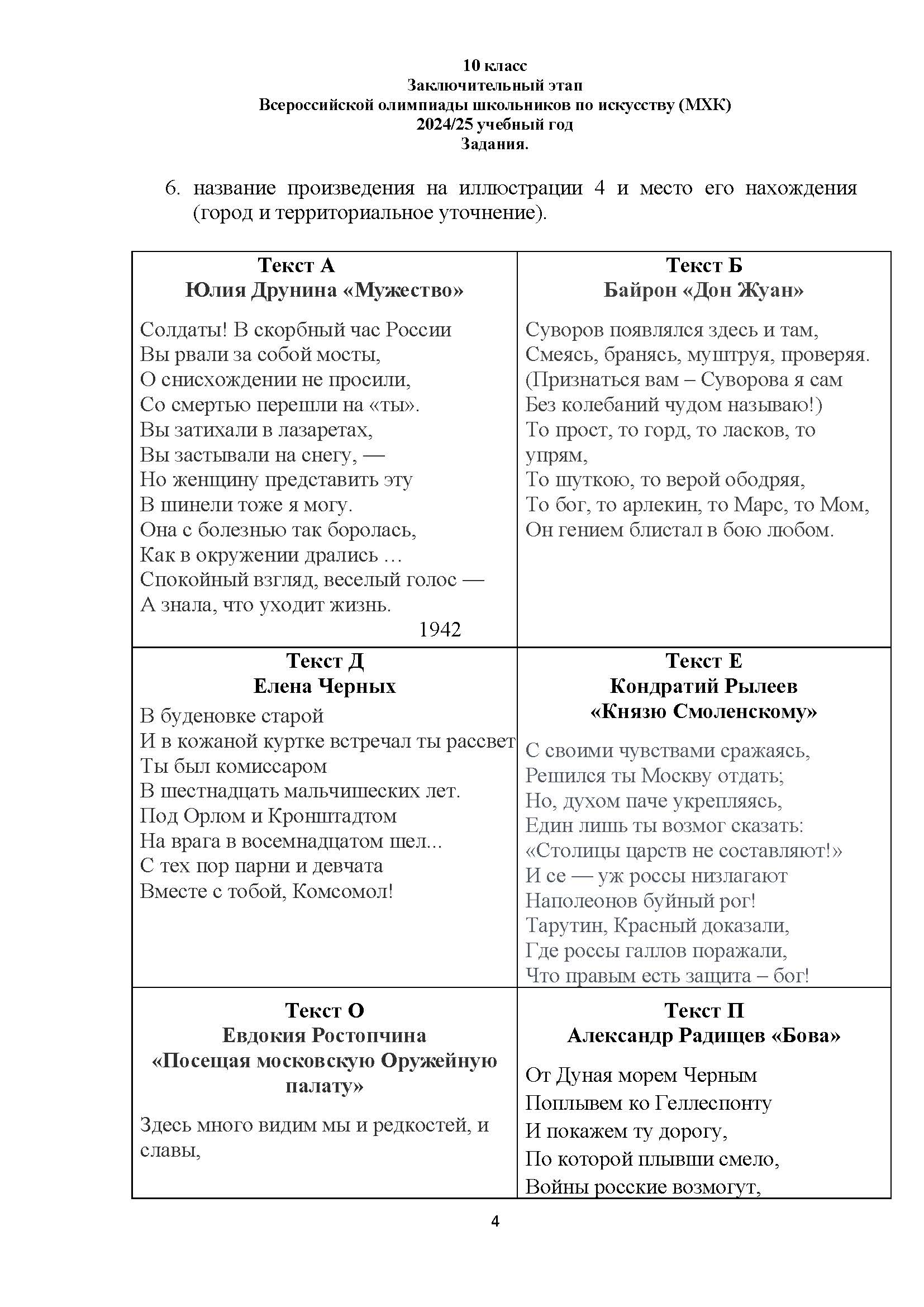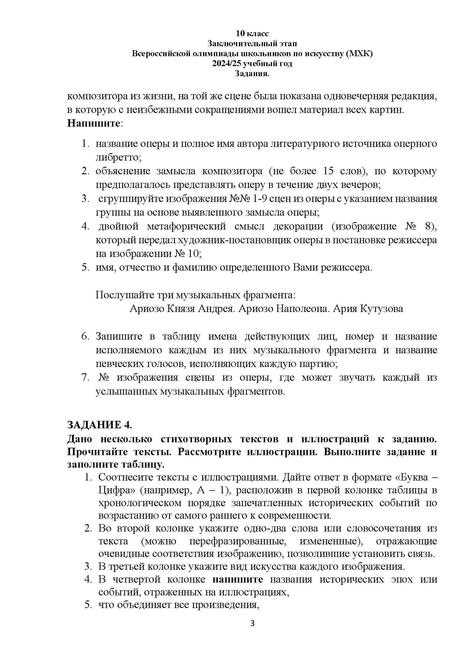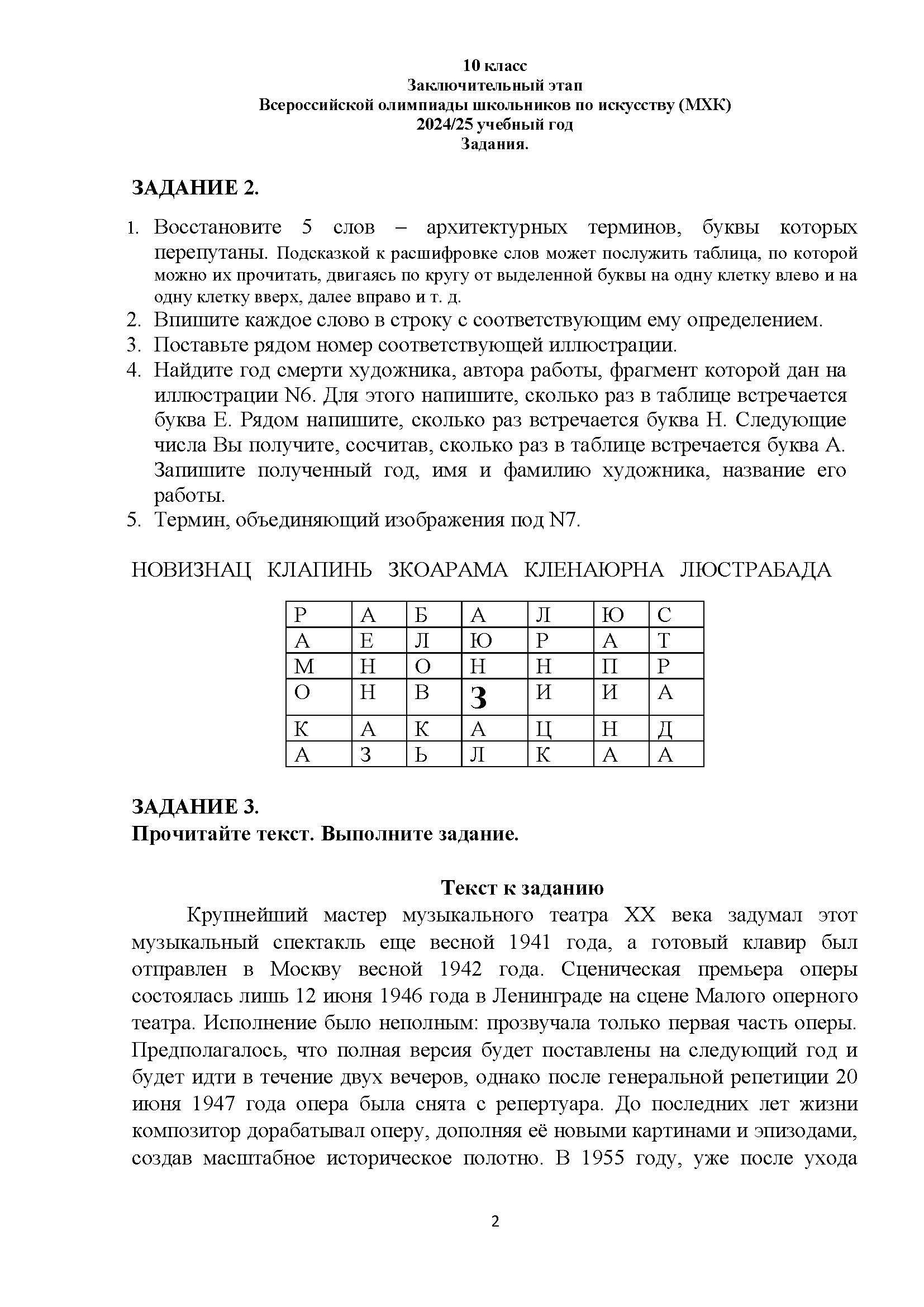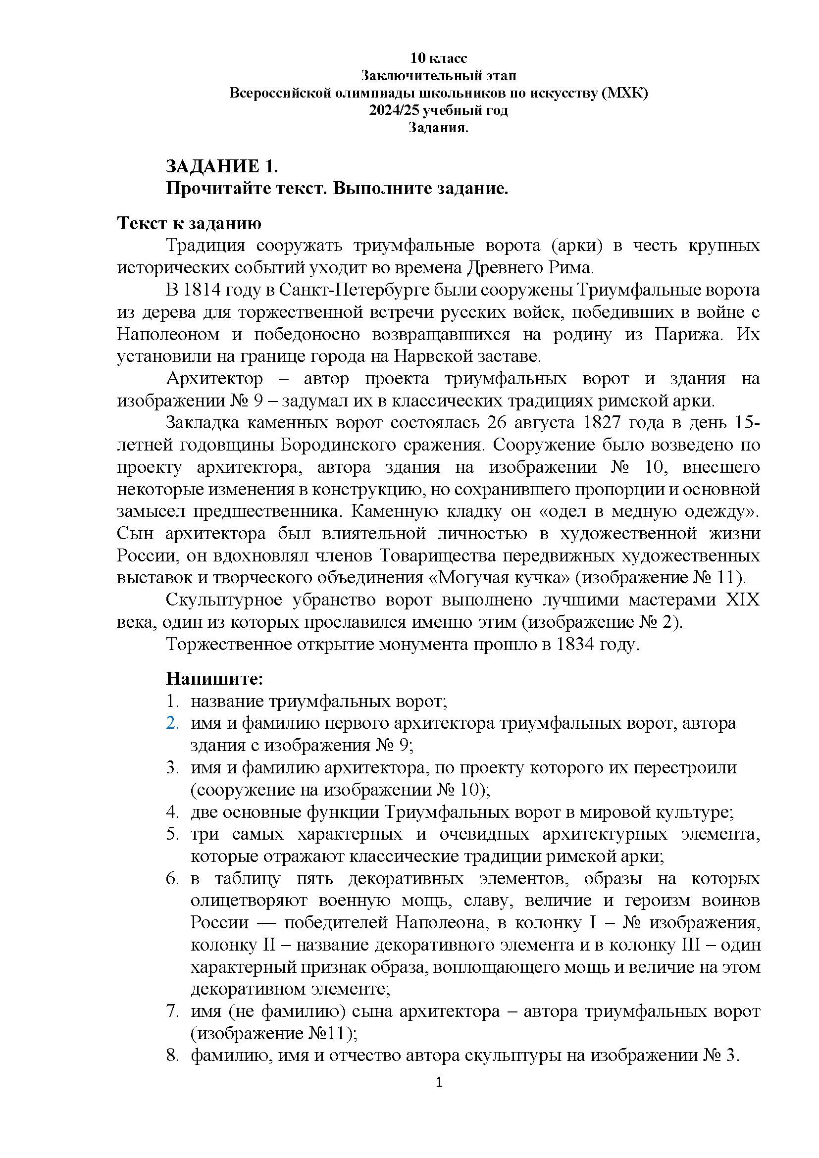 Всероссийская олимпиада школьников (ВсОШ) заключительного этапа по МХК. Официальные задания, ответы и решения для 10 (десятого) класса (задания и ответы)