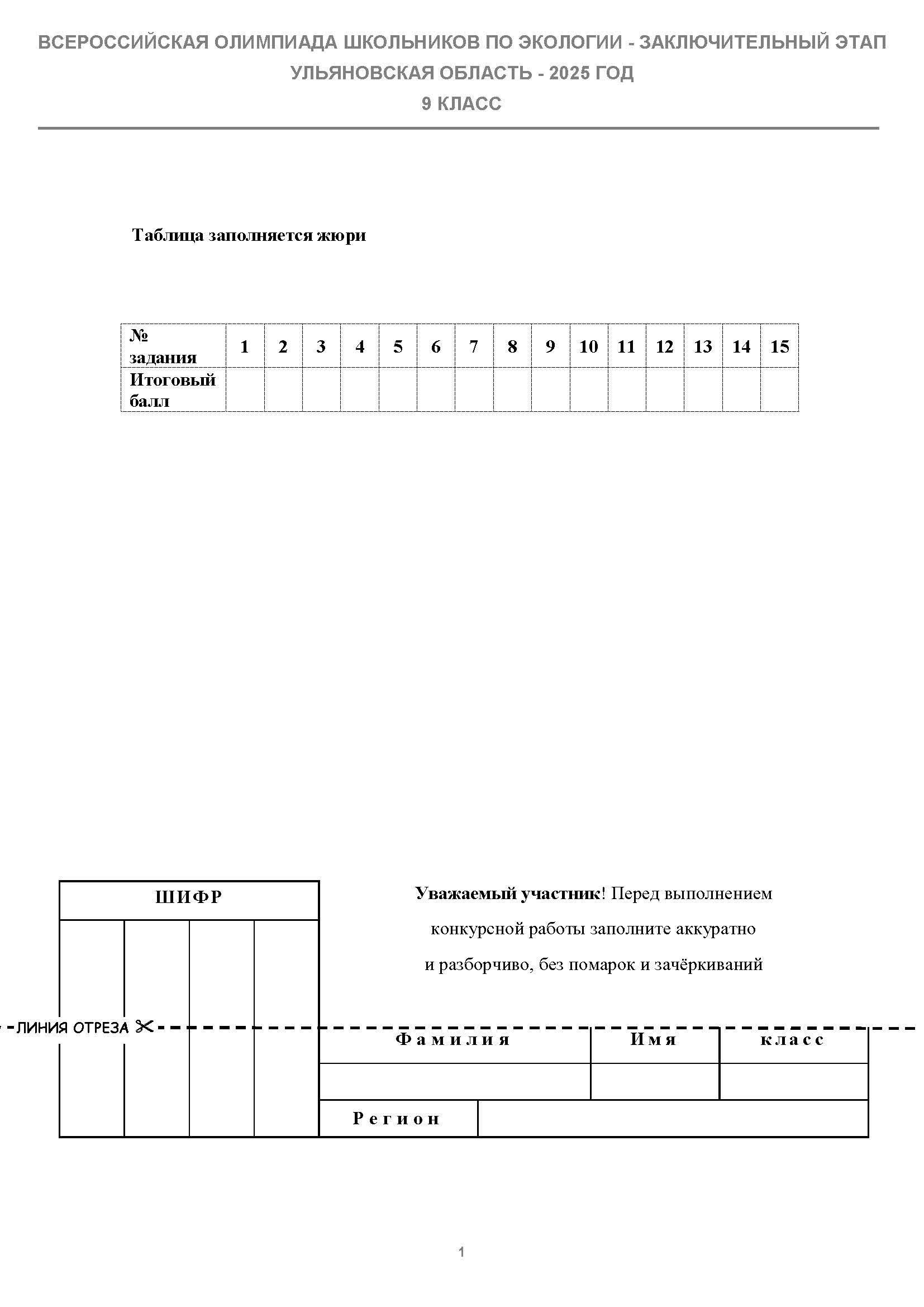 Всероссийская олимпиада школьников (ВсОШ) заключительного этапа по Экологии. Официальные задания, ответы и решения для 9 (девятого) класса (задания и ответы)